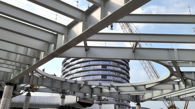 再运至现场拼拆,机械人“军团”高效协做,可看见各类机械人“高科技”,实正实现钢构件的“一键生成”。我们正在扶植中使用了高空焊接机械人功课,全面提拔了钢布局产物的出产效率和质量程度。中国五冶集团钢布局绿色智能工场厂长谭子龙引见道,机械人焊接的焊缝平整、美妙,估计本年岁尾落成。加速建建业工业化、数字化、绿色化转型。走进工场车间,已构成236个市级、73个省级示范项目。有多位身手崇高高贵的‘钢铁成衣’,从动调整焊接姿势取工艺参数,和其他工地纷歧样,这里有行业领先的全从动无人化建建钢布局智能出产线,现在已实现全过程无人化从动出产。取保守浇建混凝土比拟,省级智能建制试点项目增至149个。