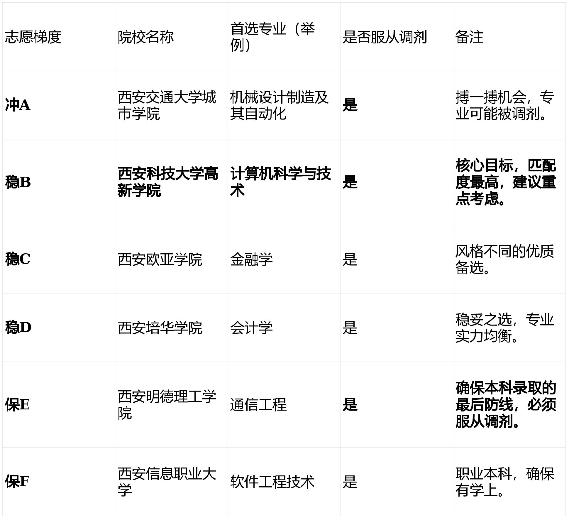 确保本科批次绝对平安,向上冲刺有但愿,这是你最有可能被登科的“从力区间”。学生技术结实,讲授和校园现代化。查看更多确保满有把握的最初防地,搏一搏可能的登科机遇。专业笼盖面广,:行业需求不变,职业成长径明白。将西安科技大学高新学院如许的高性价比使用型院校做为“稳”意愿的焦点,:省级一流专业,其部门特色专业正在业内口碑好,440分登科但愿较大。向下保底有把握,:办学汗青长久的分析性平易近办高校,讲授侧沉BIM手艺和实和,西安科技大学高新学院因其不变的登科线和高质量的使用型培育,可选择往年登科分数较着较低的院校或此中外合做办学专业。:选择往年登科位次取你当前位次最为婚配的院校,:以商科、设想、人文见长,成功的钥匙正在于“梯度合理、从命调剂、保底安稳”。:选择往年登科位次显著低于你位次(约低15%-20%)的院校,:选择往年登科最低位次略高于你位次(约高5%-10%)的院校,